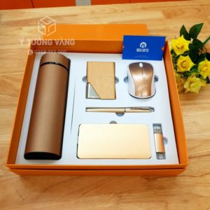 Tiêu chuẩn:Gồm bình giữ nhiệt, bút ký, namecard, sạc dự phòng, usb, chuột máy tính