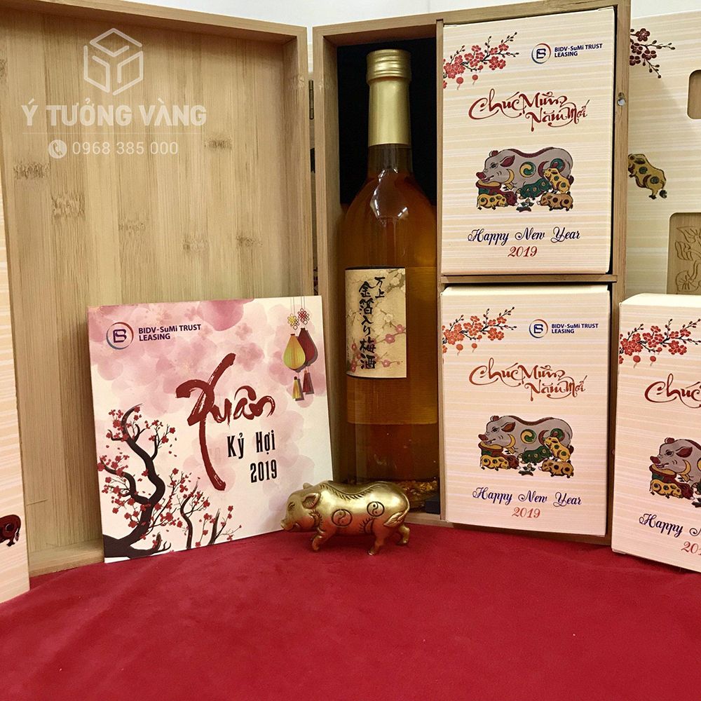 Tiêu chuẩn: Gồm hộp tre, rượu mơ vảy vàng, hộp hạt và lợn đúc đồng