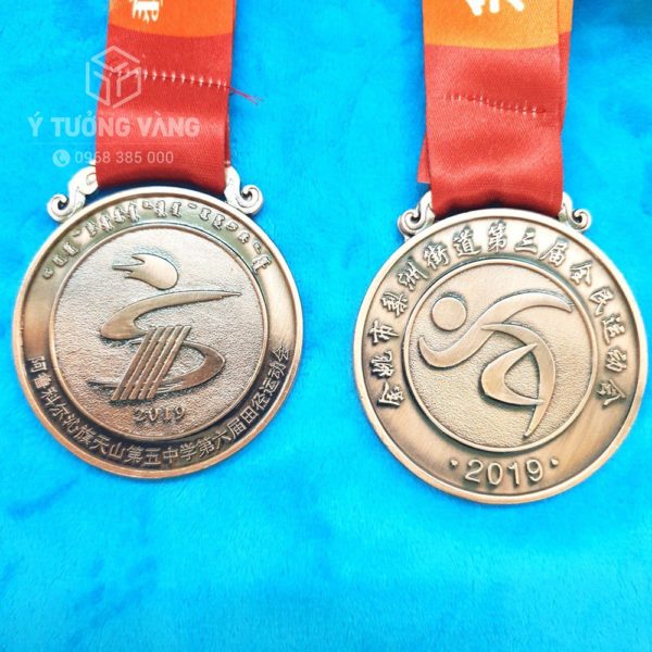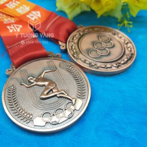Mẫu huy chương 04 có kiểu dáng mặt tròn đang là mẫu thiết kế thịnh hành hiện nay. Sản phẩm được chế tác từ chất liệu hợp kim đồng mang lại độ bền hoàn hảo. Cùng với đó là lớp mạ màu cao cấp giúp huy chương bền màu, giữ được độ sắc nét qua thời gian. Cả 2 mặt của tấm huy chương tạo điểm nhấn đặc sắc bởi những họa tiết hoa văn nổi bật, độc đáo. Một mặt đúc nổi hình ảnh vận động viên đang trong tư thế thi đấu với khát khao chiến thắng. Mặt còn lại của tấm huy chương là hình ảnh lá cờ 5 vòng tròn – biểu tượng tiêu biểu của thế vận hội Olympic. Qua đó biểu hiện được tinh thần thể thao cao thượng, đề cao hoạt động giao lưu, bình đẳng và thống nhất trong thể thao toàn cầu. Tổng thể đã tạo nên 1 tấm huy chương đẹp, đẳng cấp và đầy ý nghĩa, khiến ai cũng có thể cảm thấy vinh dự và tự hào khi được đeo lên cổ.