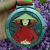 Mẫu huy chương 10 tại Ý Tưởng Vàng là một tặng phẩm lưu niệm đặc biệt, thể hiện hình ảnh đặc trưng của người phụ nữ Việt Nam. Sản phẩm có thiết kế hình tròn phổ biến nhưng không hề đơn điệu với các điểm nhấn nằm ở chi tiết và màu sắc. Chất liệu hợp kim đồng đem lại độ bền hoàn hảo, lớp mạ màu giả cổ tạo sắc nét riêng cho tấm huy chương. Trên bề mặt huy chương là hình ảnh cô gái Việt Nam trong trang phục truyền thống với áo dài và nón Huế nền nã, dịu dàng. Một số công trình văn hóa du lịch tiêu biểu của nước ta cũng được khắc nổi ấn tượng. Viền ngoài huy chương là 4 chữ công dung ngôn hạnh được trình bày một cách hài hòa, bắt mắt.