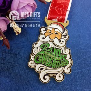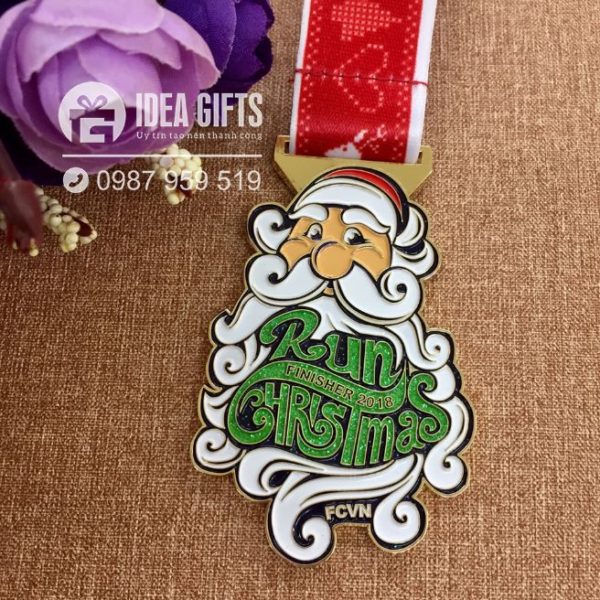 Mẫu huy chương mã số 47 giành cho người hoàn thành giải chạy giáng sinh năm 2018. Sản phẩm được thiết kế hình ông già noel kèm tên giải chạy. In phun màu sắc bắt mắt.