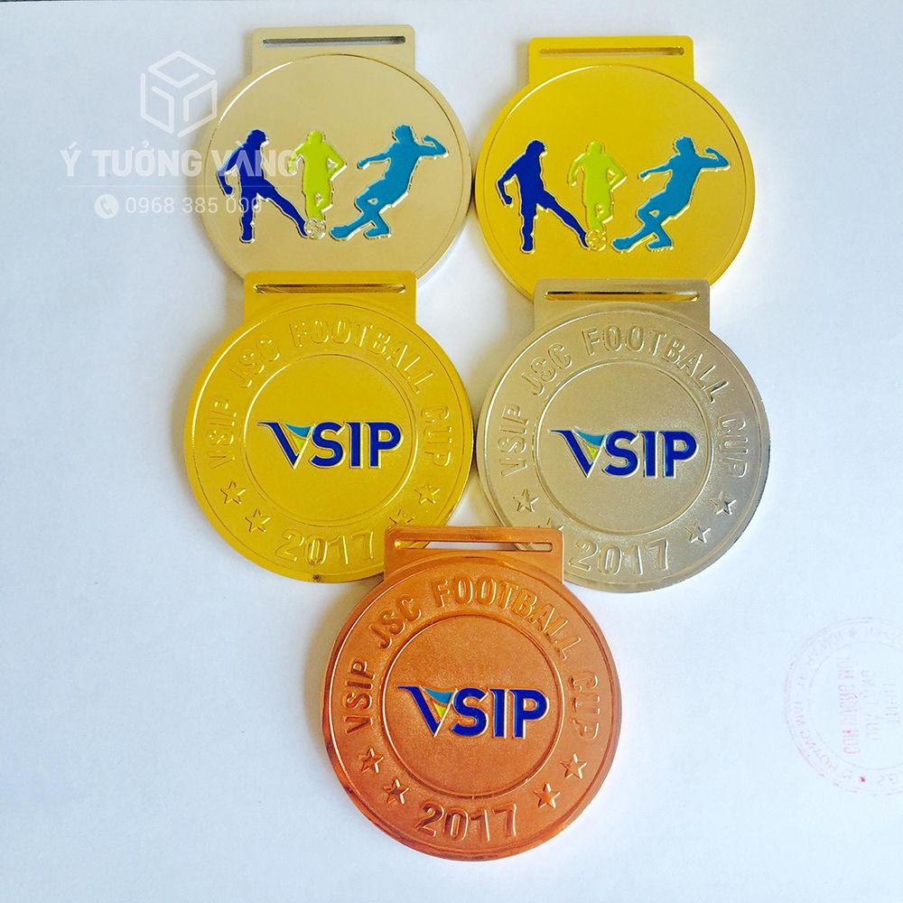 Mẫu huy chương mã số 48 gồm các sản phẩm huy chương vàng, bạc, đồng thiết kế cho giải bóng đá của công ty VSIP. Mặt trước dập tên công ty, mặt sau in hình ảnh biểu tượng của giải đấu.