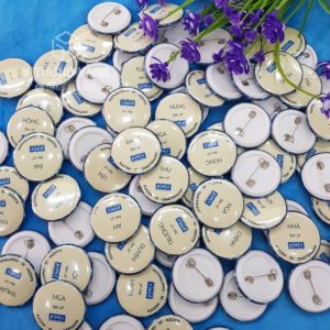 Mẫu huy hiệu nhựa cho doanh nghiệp có in tên cá nhân nổi bật trên màu nền sáng. Sản phẩm thiết kế hình tròn, rất dễ sử dụng nhờ khuy cài ghim băng. Nhờ làm bằng chất liệu nhựa thông thường nên mẫu huy hiệu này có giá thành phải chăng, chỉ từ vài nghìn đồng cho một sản phẩm.