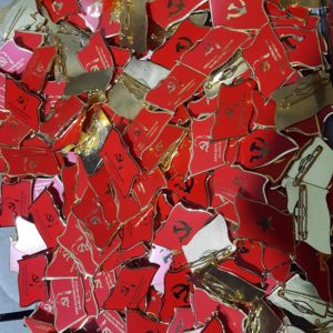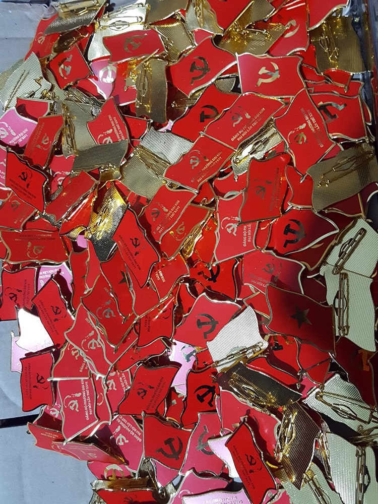 Mẫu huy hiệu kim loại 93 được thiết kế cho Đại hội Đảng bộ Cảng Vụ Hàng không miền Bắc. Huy hiệu được làm bằng hợp kim đồng, thiết kế hình lá cờ tổ quốc trên nền đỏ, chữ vàng. Đặc biệt, hình ảnh Bác Hồ ngời sáng cạnh biểu tượng búa liềm, thể hiện cho những tư tưởng, đường lối của Bác vẫn soi sáng và dẫn đường cho cho Đảng ta.