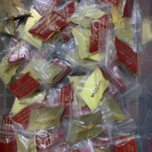 Quy cách: Khuy bướm, khuy cài nam châm, kim băng và hộp đựng theo yêu cầu.