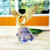- Kiểu dáng: Kỷ niệm chương có đế bằng pha lê trong suốt, phía trên là biểu tượng của doanh nghiệp bằng hợp kim đồng mạ vàng. Thông tin doanh nghiệp được in trên đế pha lê.
