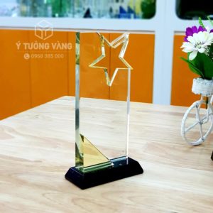Kỷ niệm chương pha lê 07 được làm từ chất liệu pha lê cao cấp trong suốt toát lên vẻ đẹp của sự sang trọng, danh giá, thể hiện đẳng cấp của cả người tặng và người nhận. Sản phẩm có thiết kế hình khối gắn ngôi sao vàng lấp lánh trên đầu – biểu tượng cho sức mạnh vươn cao, vươn xa, tinh thần cầu tiến và quyết tâm hoàn thành mục tiêu. Sản phẩm có thể in khắc hoa văn, thông điệp, logo, tên thương hiệu… hiệu tùy theo yêu cầu của khách hàng. Đó sẽ là món quà ý nghĩa đem lại niềm vinh hạnh và tự hào, đồng thời có giá trị trưng bày cao. Một chiếc kỷ niệm chương pha lê độc đáo, tinh xảo được đặt trang trọng ở những vị trí như bàn làm việc, tủ trưng bày… vừa làm món đồ trang trí đẹp mắt, lại mang ý nghĩa tinh thần to lớn.
